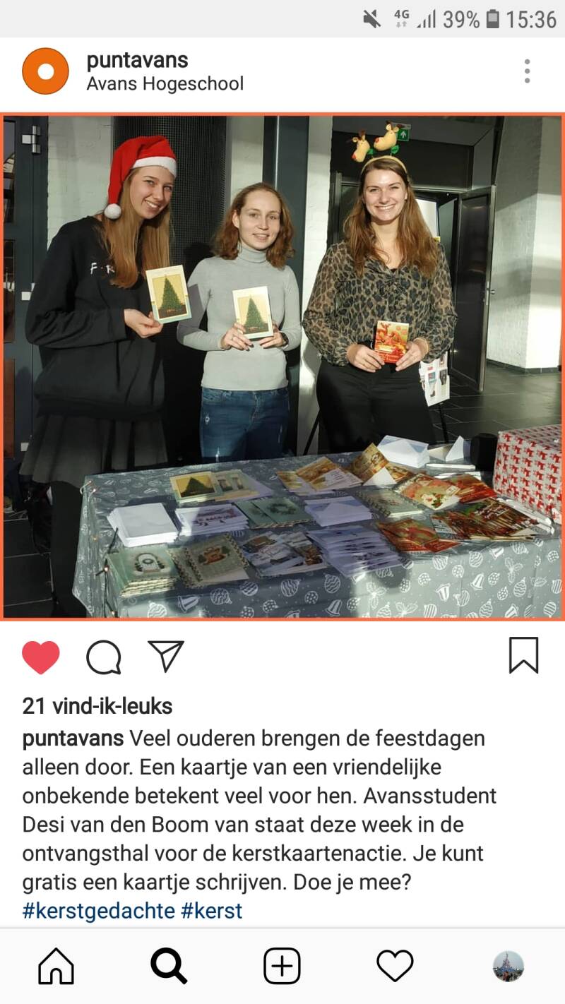 In de klas van de minor Active Ageing ging een tijd terug een bericht uit van het ouderenfonds. Zij zamelen geschreven kerstkaarten in voor eenzame ouderen. Een student heeft dit bericht opgepakt en uitgezet tot een kaartenactie op Avans Hogeschool.